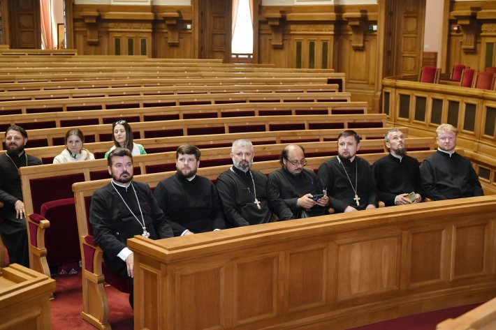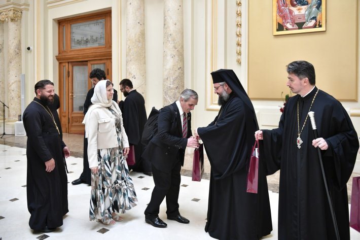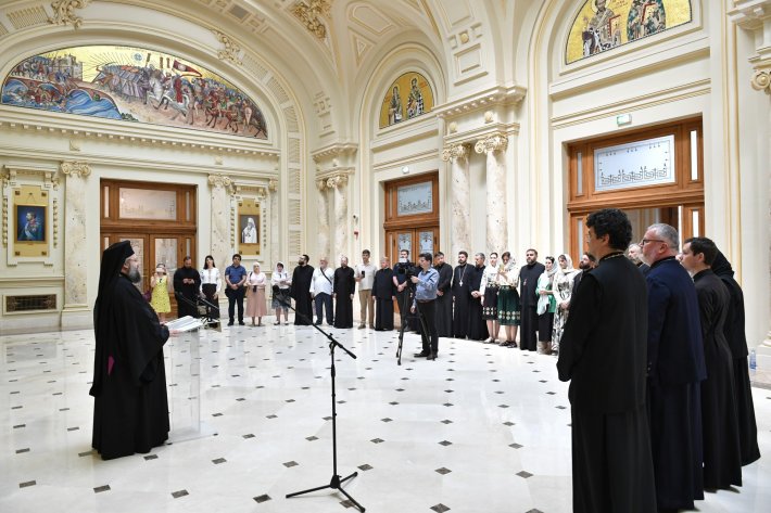 La final, părintele decan a dăruit fiecărui masterand ultimul număr al Anuarului Facultății de Teologie Ortodoxă (2024). În continuare, studenții masteranzi au vizitat Biserica „Sfânta Ecaterina” - Paraclis universitar, studiourile Radio TRINITAS și TRINITAS TV, precum și Palatul Patriarhiei, unde au fost întâmpinați de Preasfințitul Părinte Paisie Sinaitul, Episcop-vicar patriarhal, delegatul Preafericitului Părinte Daniel, Patriarhul Bisericii Ortodoxe Române, care le-a adresat un cuvânt de bun venit. „Este o mare bucurie să vă întâmpinăm astăzi aici, în inima Ortodoxiei românești, pe voi, tineri teologi masteranzi care veniți din Chișinău, din inima Basarabiei noastre românești, dintr-un pământ cu adânci rădăcini creştine, unde jertfa, cultura și dreapta credință s-au împletit în istorie. Vizita voastră nu este doar un eveniment academic sau o călătorie culturală, este mai mult decât un gest simbolic. Este o dovadă că, dincolo de granițe omenești și jurisdicții bisericești, există o unitate de credință, de limbă și de suflet, care ne leagă și ne întărește. Trăim vremuri grele și tulburi, în care războiul din apropierea granițelor noastre este o rană adâncă în trupul Europei și un strigăt de durere care atinge conștiințele tuturor creștinilor. Ca slujitori ai păcii și ai adevărului, suntem chemați să nu fim nici indiferenți, nici descurajați, ci să rămânem fideli Evangheliei lui Hristos și demnității umane, să slujim neîncetat dreptatea, pacea și libertatea”.