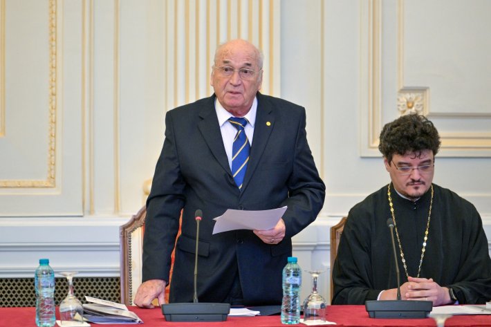 Acad. Dumitru Murariu, vicepreședintele Academiei Române, a transmis apoi un mesaj de felicitare din partea forului cultural și științific pe care îl reprezintă.