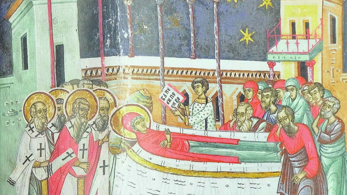 Sfânta Ana a fost bunica după trup a Domnului nostru Iisus Hristos şi era din seminţia lui Levi, fiind fiica lui Matan preotul şi a Mariei, soţia sa. Matan şi Maria au avut trei fete: Maria, Sovi şi Ana. Şi au măritat ei pe Ana, în ţinutul Galileei, cu dreptul Ioachim. Prin multă rugăciune Sfânta Ana a născut-o pe Maria, Născătoarea de Dumnezeu. Sfânta şi Dreapta Ana, a cărei adormire o prăznuim astăzi, după ce a născut pe Fecioara Maria, pe începătoarea mântuirii noastre şi a dăruit-o pe ea să fie crescută la templu, ca pe un dar fără de prihană, a trăit cealaltă vreme a vieţii sale cu postiri, cu rugăciuni şi cu faceri de bine către cei lipsiţi, şi aşa s-a mutat în pace la Domnul.