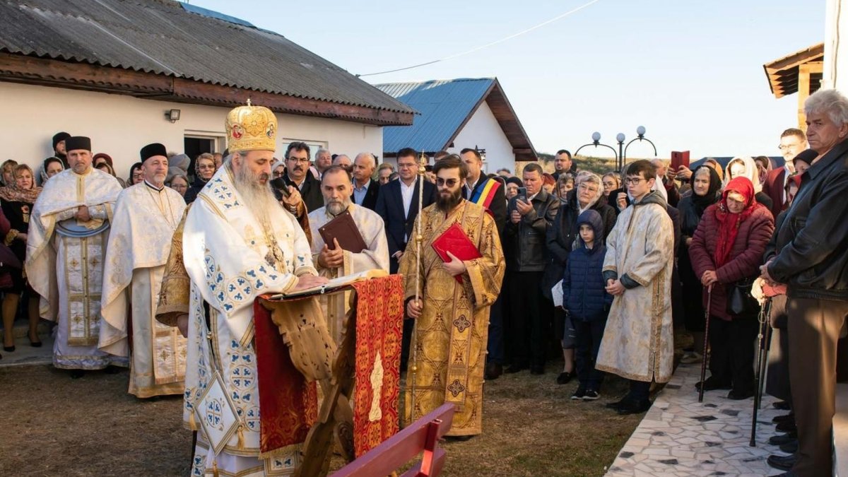 Slujba de binecuvântare a noului lăcaș a fost săvârșită de Înaltpreasfințitul Părinte Teofan, împreună cu un sobor de preoți și diaconi. Ierarhul a sfințit zidurile exterioare cu Sfântul și Marele Mir și cu apă sfințită, iar mai apoi a pecetluit Sfânta Masă.