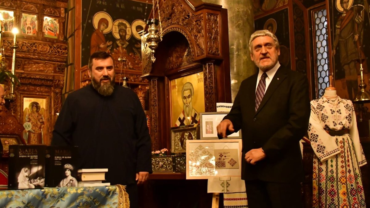 „Întrucât s‑a desfășurat într‑un spațiu liturgic, evenimentul a debutat cu slujba de Te Deum cu ocazia Centenarului Încoronării, urmat de slujba Parastasului, în care au fost pomenite atât cele două personalități evocate în cadrul conferinței - Regina Maria, ctitora acestei biserici, și Vasile Stroescu, înmormântat în cimitirul Sfânta Vineri aflat în imediata vecinătate, cât și toţi făuritorii Marii Uniri de la 1918. Am adus în atenția comunității parohiale două personalități marcante ale neamului nostru, pentru a le aduce un pios omagiu și a le cunoaște mai în amănunt viața și contribuția pe care le‑au adus cu timp și fără timp la prestigiul României Mari, dar și pentru a admira armonia portului popular românesc. Regina Maria a admirat tradițiile românești, viața oamenilor de la țară și portul popular, făcându‑le cunoscute în lume prin povestirile sale”, ne‑a transmis părintele paroh Traian Ioan Diaconu.