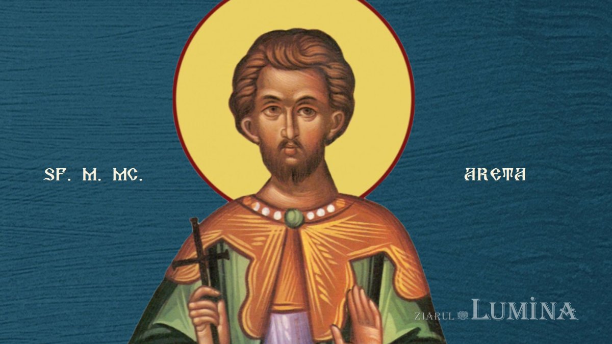 Sfântul Areta (†523) a fost un mare dregător creştin al cetăţii Negran din Etiopia, pe vremea când la Constantinopol domnea împăratul Iustin cel Bătrân (518-527), iar peste ţara Etiopiei era rege Elezbaan. Poporul etiopian înflorea sub stăpânirea lui. În acea vreme, în Arabia, pe care Sfânta Scriptură o numeşte Saba (3 Regi 10, 1), adică în Yemenul de astăzi, s-a ridicat un împărat pe nume Dunaan, care ţinea legea iudeilor şi era prigonitor al creştinilor. Deci, auzind regele Elezbaan că Dunaan a pornit prigoană asupra creştinilor din ţara sa, mâhnindu-se foarte tare, a mers asupra lui cu război şi luptându-se l-a biruit pe acela, punându-l să plătească bir. Dar, după o vreme, Dunaan a nesocotit înţelegerea făcută şi adunând mare oaste a ucis pe toţi ostaşii lăsaţi de Elezbaan pentru paza cetăţilor. Astfel, Dunaan s-a răzvrătit şi a asediat cetatea Negran, dar neputând s-o cucerească, le-a jurat creştinilor din ea că nu le va face nici un rău dacă îi vor deschide porţile de bunăvoie. „Mă jur pe Dumnezeu că nu vă voi face nici un rău, ci vă voi lăsa pe voi în pace, să vieţuiţi după credinţa voastră. Cer de la voi numai obişnuita dajdie către împărat. Deschideţi-mi, dar, cetatea, ca să o văd şi să îmi iau dajdia cuvenită de la voi”, le-a spus Dunaan. Mai-marii cetăţii l-au crezut pe Dunaan şi au deschis porţile cetăţii, chiar dacă Areta, care era bătrân acum, se împotrivea. Areta permanent le spunea locuitorilor cetăţii cuvintele Sfântului Pavel: „Staţi deci tari în libertatea cu care Hristos ne-a făcut liberi şi nu vă prindeţi iarăşi în jugul robiei” (Galateni 5, 1). După ce a intrat în cetate, Dunaan şi-a călcat jurământul şi i-a omorât pe toţi creştinii pe care i-a aflat acolo. Printre ei a fost şi bătrânul Areta, care a luat moarte de mucenic prin sabie. Împreună cu el au fost omorâţi 340 de creştini.