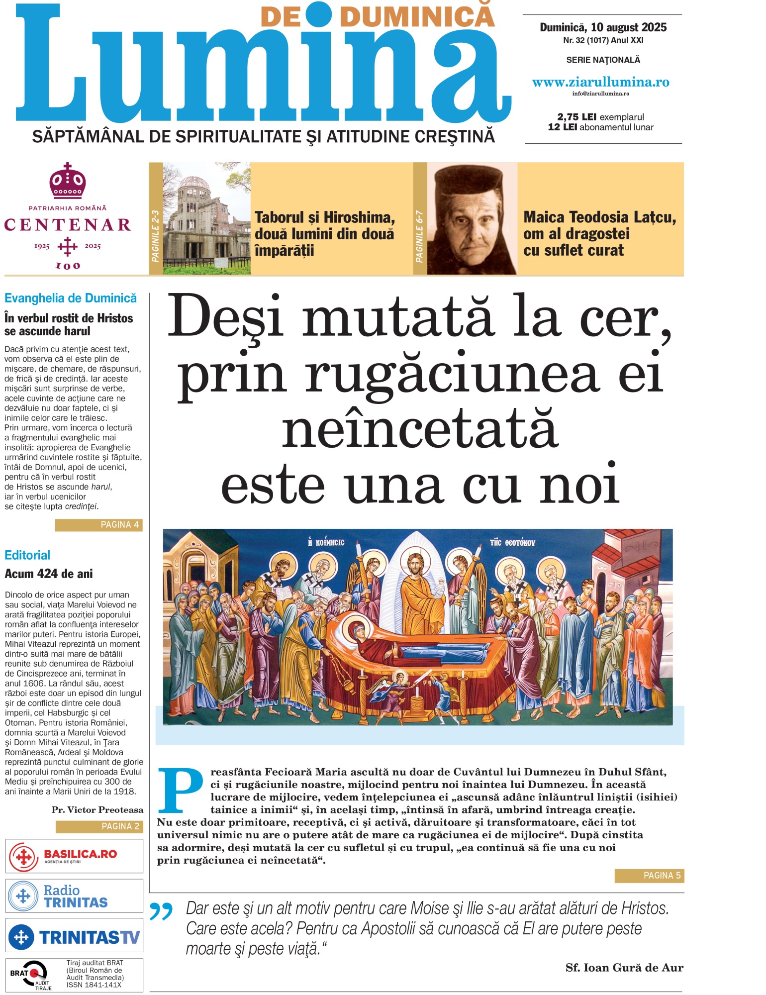 Anul 2025, declarat de Sfântul Sinod al Bisericii Ortodoxe Române Anul omagial al Centenarului Patriarhiei Române și Anul comemorativ al duhovnicilor și mărturisitorilor ortodocși români din secolul al XX-lea,