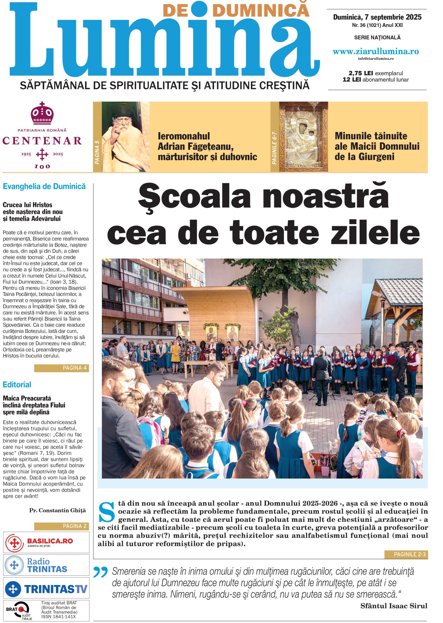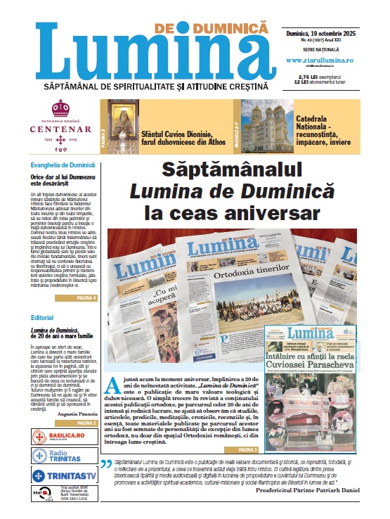 Ziarul Lumina utilizează fişiere de tip cookie pentru a personaliza și îmbunătăți experiența ta pe Website-ul nostru. Te informăm că ne-am actualizat politicile pentru a integra în acestea și în activitatea curentă a Ziarului Lumina cele mai recente modificări propuse de Regulamentul (UE) 2016/679 privind protecția persoanelor fizice în ceea ce privește prelucrarea datelor cu caracter personal și privind libera circulație a acestor date. Înainte de a continua navigarea pe Website-ul nostru te rugăm să aloci timpul necesar pentru a citi și înțelege conținutul Politicii de Cookie. Prin continuarea navigării pe Website-ul nostru confirmi acceptarea utilizării fişierelor de tip cookie conform Politicii de Cookie. Nu uita totuși că poți modifica în orice moment setările acestor fişiere cookie urmând instrucțiunile din Politica de Cookie.