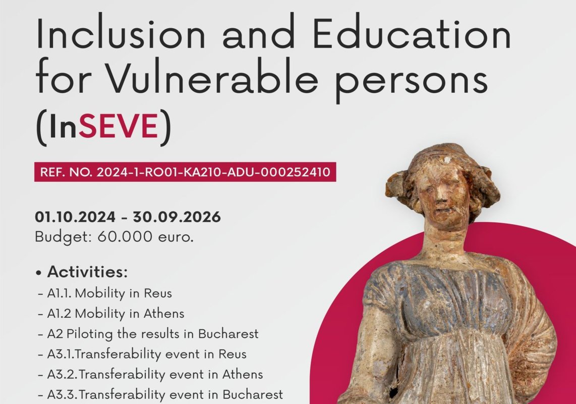 Muzeul Național de Istorie a României (MNIR) organizează, în perioada 24-26 septembrie 2025, o serie de activități dedicate accesibilizării și incluziunii sociale, în cadrul proiectului „Inclusion and Education for Vulnerable Persons” (InSEVE), finanțat prin programul Uniunii Europene Erasmus+ - Educația Adulților. Evenimentele se adresează în special profesioniștilor din domeniul cultural, precum muzee și biblioteci, dar și reprezentanților organizațiilor persoanelor cu mai puține oportunități, potrivit unui comunicat de presă al MNIR.