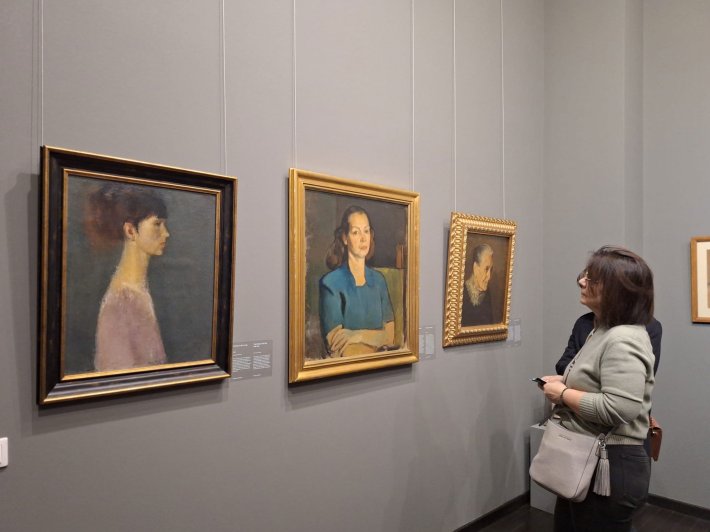 Un portret impresionant din expoziție este al actriței Monica Ghiuță, iar un altul, foarte cunoscut, este cel care o reprezintă pe celebra actriță Lucia Sturdza Bulandra (1953). Tabloul este de o mare finețe, dar artistei nu i-a plăcut, întrucât apare prea bătrână. Vizitatorii au aflat și povestea portretului Elenei Haschke-Marinescu (1956), artist plastic la rândul ei, precum și detalii despre muziciana Maria Calleya (1982), care i-a fost muză pentru portretul numit ca atare, dar și pentru seria tablourilor „spaniole”. Lucrarea „Portret de fată în roz”, o capodoperă, este un adevărat elogiu adus feminității, privirea tinerei pictate fiind de un profund mister, prin tehnica folosită artistul situându-se în galeria maeștrilor pe care i-a admirat până la obsesie: Velásquez, Rembrandt și Goya.