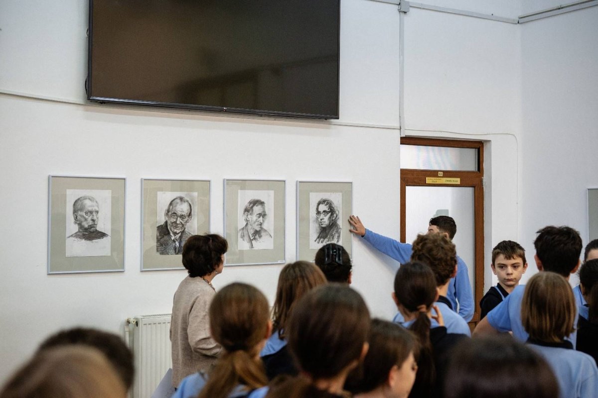 „Dincolo de arta în sine, pentru elevi este foarte important să facă asocieri, să se apropie de autorii cărora poate deja le-au citit cărțile. Am încercat să facem ca artele să dialogheze, copiii să înțeleagă ce înseamnă, dincolo de cartea pe care o au ei în ghiozdan și acasă, să fie o respirație legată de literatură pentru ei. Este important. Au descoperit portrete, au recunoscut scriitori, au teme de făcut în sensul acesta, să cerceteze și ei texte și să găsească lucruri interesante, care să-i facă să iubească și mai mult cititul și literatura în general. În galeria „Theodor Aman” tronează Ispirescu, pe care toți l-au recunoscut și s-au bucurat să-l regăsească. Există, evident, portretele lui Coșbuc, Arghezi, Alecsandri, Goga. Copiii traversează mai multe epoci literare și vor avea acum ocazia să aprofundeze, pornind de la personalitatea scriitorului, de la chipul pe care îl văd aici, în galerii”, a spus Mona Șerbănescu, directoarea Liceului Pedagogic Ortodox.