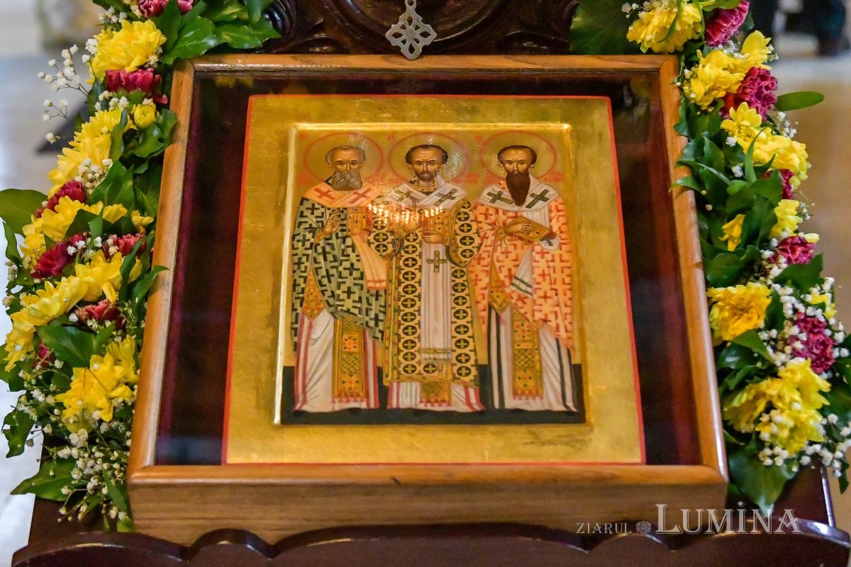Sfinţii Trei Ierarhi ne învaţă că trebuie să avem conştiinţa că ne aflăm mereu în faţa lui Dumnezeu şi că, dacă avem această conştiinţă, ar fi bine să ştim ce aşteaptă Dumnezeu de la noi. Sfântul Grigorie Teologul, Cuvântătorul de Dumnezeu, a surprins într-o frază memorabilă ce aşteaptă Dumnezeu de la noi. El spune că Dumnezeu aşteaptă trei lucruri de la tot omul care a primit Sfântul Botez: credinţa dreaptă de la minte, adevărul de la limbă şi curăţia de la trup. Lucrurile acestea Sfinţii Trei Ierarhi le-au împlinit şi ne cheamă şi pe noi, creştinii de azi, să le împlinim. Mesajul lor pentru noi este că nu poate exista creştinism fără credinţa în Sfânta Treime, adică fără învăţătură, nu poate exista creştinism fără o viaţă curată, de asceză, nu poate exista creştinism fără rugăciune, fără participare la sfintele slujbe, nu poate exista creştinism fără cultură teologică, fără cultură de înaltă ţinută. Acesta este mesajul lor pentru noi, creştinii de astăzi. Ei sunt contemporanii noştri şi ne întrebăm dacă noi, creştinii veacului acestuia, suntem contemporanii lor. Trebuie să ne străduim să fim contemporani cu ei, să dobândim credinţa vie, lucrătoare prin fapte, să avem puterea să mărturisim credinţa în Sfânta Treime, să avem dorul de a dialoga cu Dumnezeu prin rugăciune şi atunci, cu siguranţă, noi vom fi contemporani cu ei şi ei cu noi.