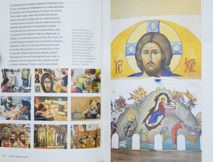 Daniel Codrescu este provocat să povestească despre devenirea ca artist și specializarea în arta mozaicului. El mărturisește importanța pe care a avut-o în propria formare tatăl său, Marcel Codrescu, important pictor bisericesc, care i-a deschis ochii și inima spre arta mozaicului. Daniel Codrescu s-a perfecționat în artă și în cadrul unui master la Florența, în Italia. Pentru a realiza planul iconografic al Catedralei Mântuirii Neamului a făcut numeroase călătorii de documentare, vizitând pentru aceasta cele mai importante biserici și edificii din întreaga lume care sunt împodobite cu mozaicuri. Vorbind despre rezistența mozaicurilor pe pereții lăcașurilor de cult, artistul dă exemple reprezentative, între acestea, mozaicurile de la Ravenna, Italia, păstrate și după 1.500 de ani. Cum a reușit pictorul, împreună cu întreaga echipă, să creeze atâta armonie și frumusețe în ansamblul pictural al Catedralei noastre? „(...) la Ravenna sunt culori foarte clare, mozaicurile de acolo sunt foarte colorate și foarte frumoase, dar contează și în ce dominantă ții pictura, în ce armonie, iar asta presupune o lucrare foarte complicată, un simț pe care-l câștigi în timp și cu mare ajutor de la Dumnezeu, cu rugăciune și printr-o pace care se așază în inima omului. Am convingerea că, până la urmă, ni se arată soluția cea mai bună, pentru că nu-i lucrarea noastră personală, e o lucrare care se află în profundă legătură cu Dumnezeu și nu avem cum să nu ținem cont de inspirația care vine de la Dumnezeu.” Artistul este convins că tot ce se întâmplă în acest proces este cu voia și ajutorul Domnului, subliniind: „Colectivul nostru s-a format așa, organic, în funcție de necesitate, în funcție de moment și cu cât merg mai adânc în proiect, cu atât mai mult îmi dau seama că, într-un fel, Dumnezeu Își pictează singur biserica.”