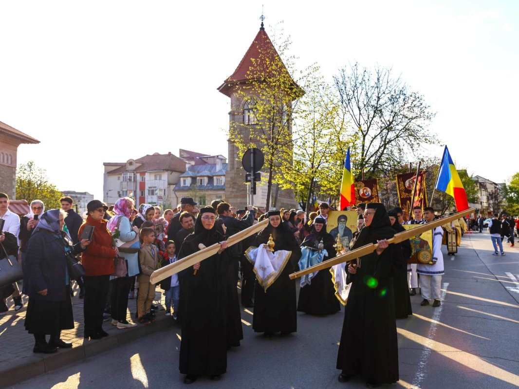 Procesiune cu moaștele Sf. Cuvios Onufrie de la Vorona pe străzile municipiului Botoșani, cu ocazia cinstirii Sf. M. Mc. Gheorghe, protectorul orașului, 22 aprilie 2023