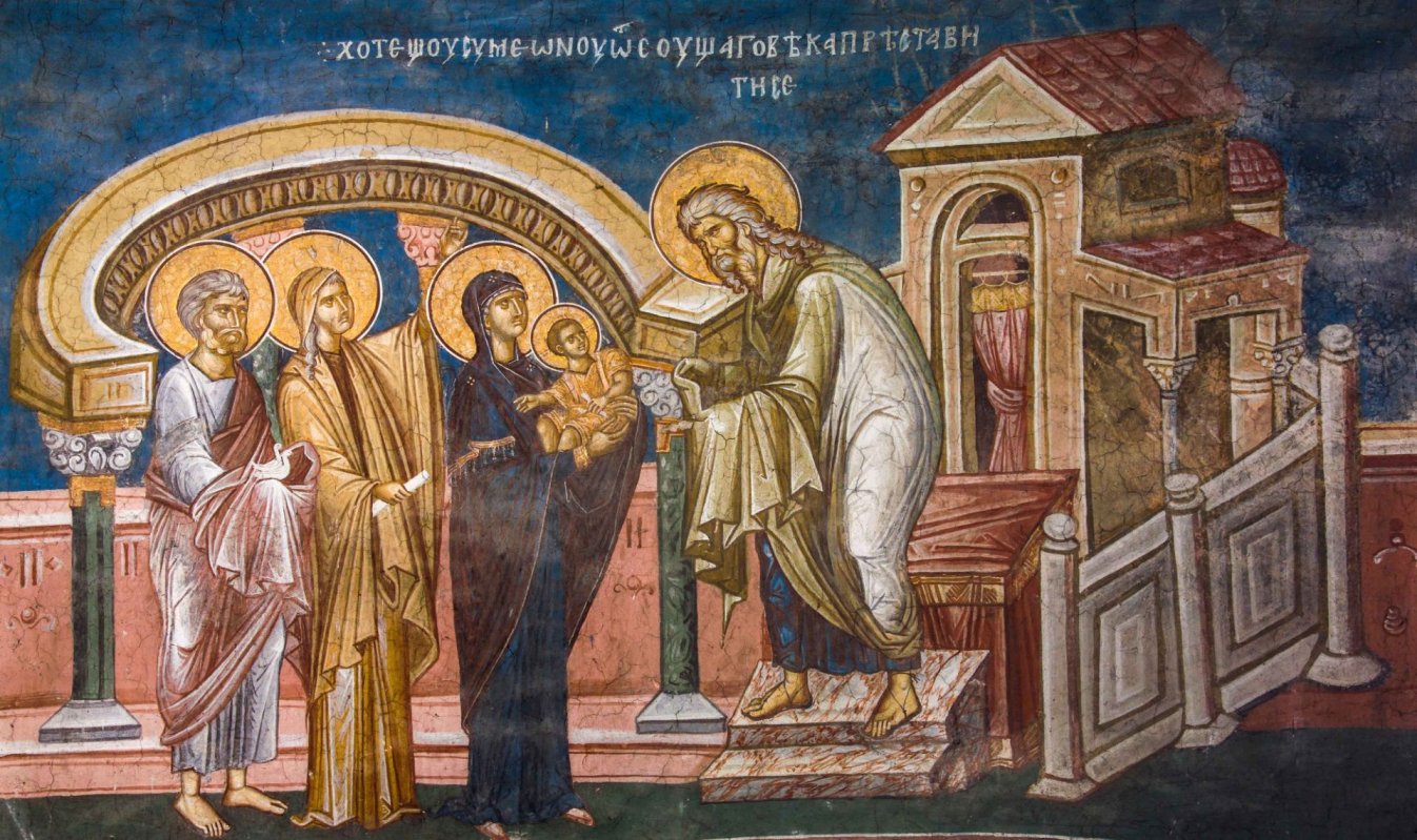 Evanghelistul Luca a primit de la Maica Domnului multe dintre amănuntele pe care ceilalți evangheliști nu le consemnează. Chiar dacă nu a fost martor direct la cele petrecute în Templul din Ierusalim, el a ascultat, cu inimă smerită, mărturisirea Preacuratei despre acea zi în care Pruncul, după rânduiala Legii lui Moise, trebuia dus pentru a fi afierosit Domnului.