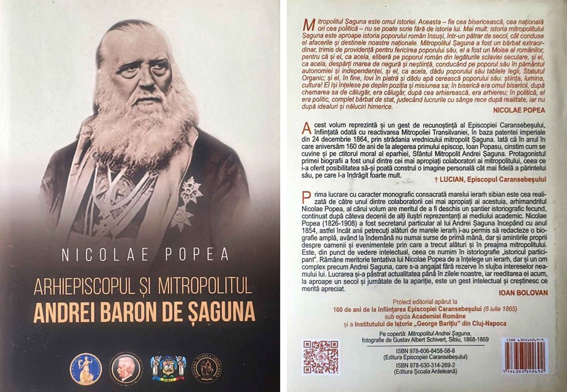 Una dintre cărțile care aduc în atenție personalitatea Sfântului Andrei Șaguna este și prima biografie despre el, scrisă de secretarul său, Nicolae Popea, Episcopul de mai târziu al Caransebeșului și membru activ al Academiei Române, intitulată simplu „Arhiepiscopul și Mitropolitul Andrei Baron de Șaguna”, publicată în anul 1879 la Tipografia Arhidiecezană din Sibiu, după șase ani de la moartea mitropolitului. Ediția din 2025 este prima reeditare într-o ediție critică a acestei lucrări, prin grija cercetătorului Mircea-Gheorghe Abrudan și a părintelui Casian Rușeț, care reușesc să aducă în atenție o lucrare ce „a deschis un șantier istoriografic fecund”, continuat după decenii de alți cercetători importanți, convinși că „a scrie istorie înseamnă a medita asupra prezentului” (Marc Bloch).