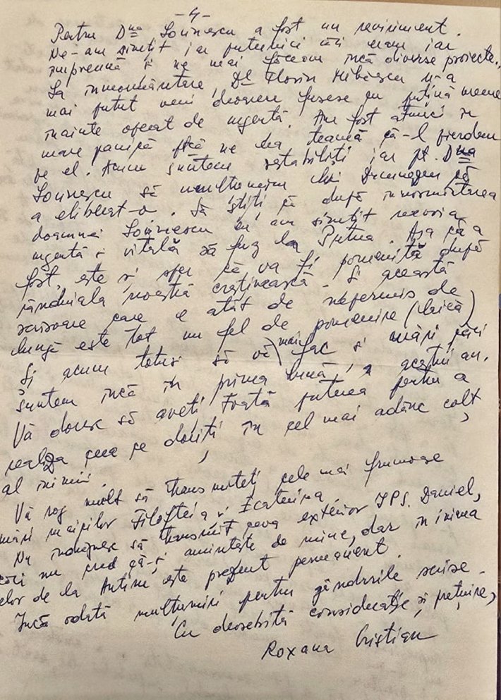 La recenta sa aniversare am avut o mare bucurie. Într‑un plic mai vechi am descoperit o scrisoare pe care doamna Roxana Cristian mi‑a trimis‑o în anul 1998. A trecut de atunci mai mult de un sfert de veac.