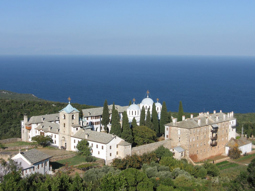 Am zăbovit câteva ceasuri bune, nu destule, dar pline, într-un așezământ cu o istorie de peste o mie de ani - piatră peste piatră, rugă peste veac, vegheat de Maica Domnului și de Sfântul Gheorghe, cel ce înfrânge răul cu sulița credinței. A fost un timp scurt, dar care a lăsat ecouri profunde în sufletele noastre, un ceas în care prezența noastră - neobișnuită și poate îndrăzneață - a fost primită cu blândețe de cei care vegheau rânduiala Muntelui, atât din conducerea Epistasiei, cât și din soborul mănăstirii.