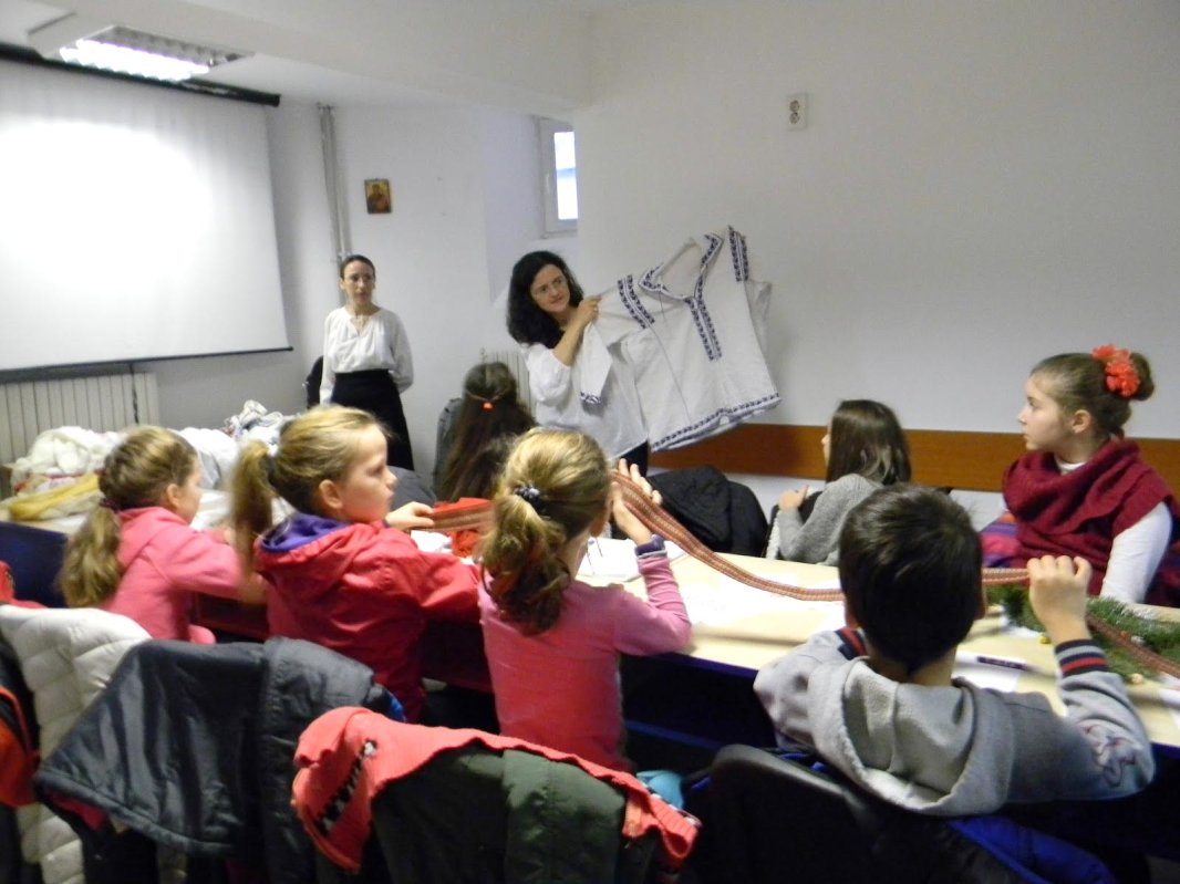 În aceste zile, la Parohia Timișoara Fabric Vest din cadrul Protopopiatului Timișoara II au avut loc două ateliere de creație, unde copiii din grupul parohial „Peștișorul de Aur” au colorat, au cusut și au povestit despre Sfântul Nicolae și Sfântul Spiridon și despre cum se pregătesc pentru primirea veștii Nașterii Domnului nostru Iisus Hristos. Au confecționat felicitări, icoane și brăduți din panglici. Au împodobit cu panglici și bețe, pentru că bețele „doar ne atenționează că uneori poate nu suntem atât de cuminți”. În cadrul evenimentului copiii grupului catehetic al parohiei au avut invitați și 30 de copii de la Școala Waldorf, care au fost curioși să învețe despre semnele cusute și despre semnificația acestora. Copiii de clasa a IV-a, însoțiți de învățătoarea Ofelia Dinescu, au fost foarte curioși, receptivi și dornici să afle cât mai multe. Unii dintre ei au adus de acasă costume populare vechi și s-au bucurat când au aflat că modelele pornesc de la aceste semne și că reprezintă ceva, adică au o poveste. `Mai întâi am povestit, pornind de la ceea ce au adus ei, mai apoi discuția a continuat cu semnele găsite între modelele prezentate. După aceea, au desenat pe hârtie câteva modele. Au purtat cu bucurie și curiozitate, din mână în mână, o maramă din borangic și un brâu țesut. «Uau, atingem firele de aur!»: așa s-au minunat când au atins firele de borangic pe care le am de la bunica. Au cusut primele cruciulițe, dar mai întâi le-am arătat cum să coasă în cruciulițe, pe o traistă ca de uriaș, cu un ac mare (pentru păpușă). Când ne-am apropiat de final, copiii au fost curioși și au pus întrebări despre cartea «Comorile celor patru orașe. Timișoara povestită copiilor», publicată în 2014, la Editura Brumar. N-ar fi fost ajuns dacă în aceste zile nu am fi și colindat. Așa că, i-am chemat și pe cei mici, din sala alăturată și am colindat împreună. A fost spontan și atât de frumos!”, a mărturisit prof. Ofelia Dinescu.