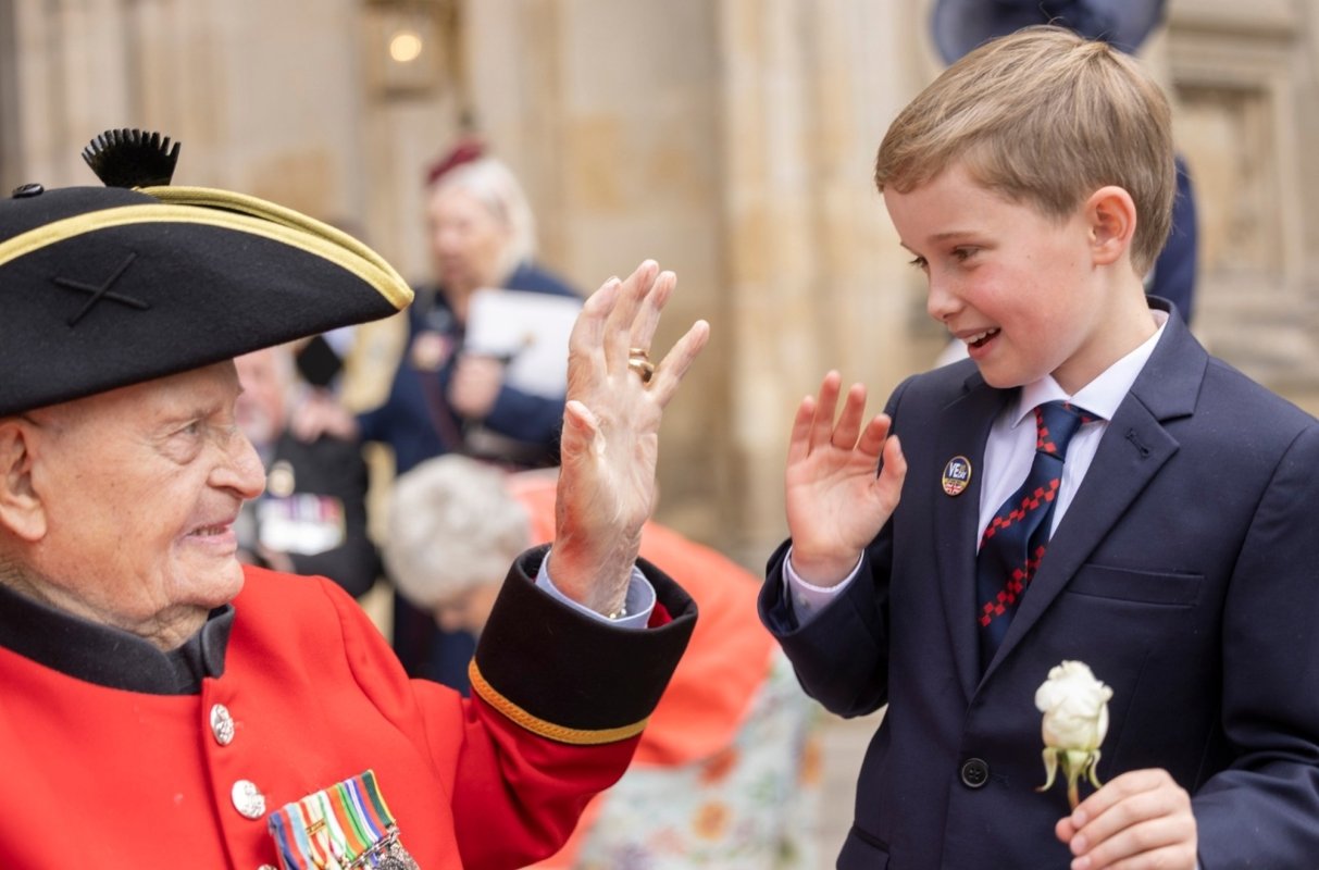 În Marea Britanie, sărbătorirea a 80 de ani de la victoria aliaţilor în cel de-al Doilea Război Mondial a cuprins o paradă militară, luni, la care a asistat şi familia regală, un ceai la care Regele Charles a invitat mai mulți veterani și o slujbă, joi, la Westminster Abbey în cadrul căreia suveranul britanic a adus un omagiu soldaţilor care au căzut în război, iar premierul Keir Starmer a subliniat că sacrificiile de atunci „nu trebuie uitate niciodată”. Ceremoniile din acest an au fost deosebit de emoţionante, deoarece numărul veteranilor este tot mai mic. La slujbă a participat şi stră-strănepotul lui Winston Churchill, în vârstă de 10 ani, care a aprins o lumânare a păcii.