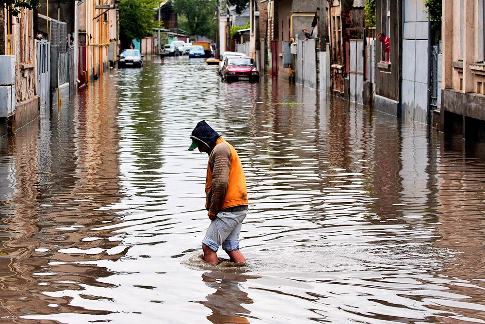 “Apa a intrat în subsolurile caselor, a inundat mai multe gospodării, dar nimeni nu a păţit nimic. Din fericire, nu sunt nici victime umane, nici printre animale“, a declarat primarul.