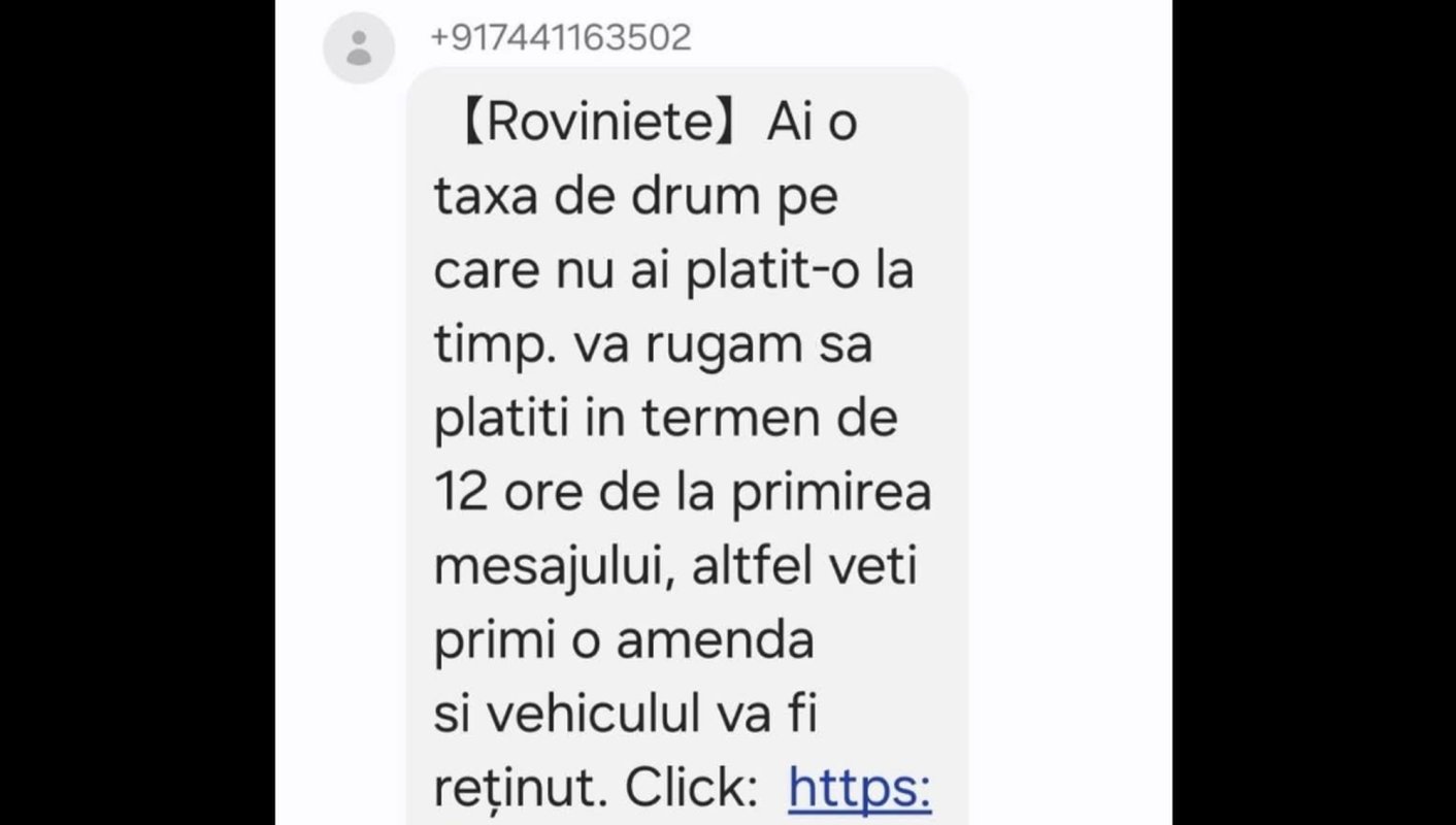 Compania Naţională de Administrare a Infrastructurii Rutiere (CNAIR) atenţionează în privința apariției mesajelor înşelătoare care pretind că sunt trimise în numele „Rovinietei” sau al CNAIR şi solicită plata urgentă a unei presupuse „taxe de drum restante”, sub ameninţarea aplicării de amenzi sau chiar a confiscării vehiculului. „Aceste mesaje sunt false”, atenţionează CNAIR pe pagina sa de Facebook. Reprezentanţii companiei precizează că CNAIR nu transmite SMS-uri care conţin linkuri de plată şi nu dispune confiscarea vehiculelor. (C.Z.)