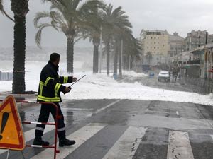 Intemperii neobişnuite pentru luna mai au afectat, marţi, sudul Franţei, unde valuri de şase metri înălţime au lovit Coasta de Azur, iar căderile de zăpadă din sud-vestul ţării au provocat pene de electricitate. De asemenea, valurile uriaşe care au atins Coasta de Azur au produs numeroase pagube pe plaje. La Nisa, "toate instalaţiile" de pe plaje, de la aeroport până la port, au fost luate de valuri, a afirmat Benoît Kandel, prim-adjunct al primarului din Nisa. La rândul său, primarul din Nisa, Christian Estrosi, care este şi ministru al Industriei, a cerut ca statul să includă oraşul său pe lista zonelor afectate de o catastrofă naturală, procedură care facilitează despăgubirea persoanelor afectate de către firmele de asigurări. În sud-vestul ţării, 23 mii de locuinţe au fost private de curent electric în departamentul Ariege, din apropierea frontierei cu Spania, după ce zăpada a provocat căderea unor arbori pe instalaţiile electrice, iar traficul aerian a fost întrerupt din cauza violenţei rafalelor de vânt în aeroporturile Perpignan şi Montpellier.