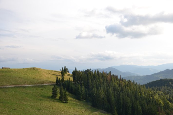 Ți-ar trebui câteva zile să faci toate opririle pe care le dorești. Calea e presărată la tot pasul de puncte din care se deschid priveliști neîntrecute. Îmbrăcați în verdele pădurii, versanții colorează orizonturi suprapuse. Soarele se joacă cu aceste contururi, creând tușe de acuarelă - când foarte vii, când estompate. Fânețele eliberează miros de miere polifloră. Natura e ca o esență intensă; distilat de liniște și de frumos. Pretutindeni, toponime rezonante, martori solitari ai unei lumi cu rânduieli vechi: Arșița Rea, Valea Colibei, Piatra Rea, Bâtca Dohotarului.