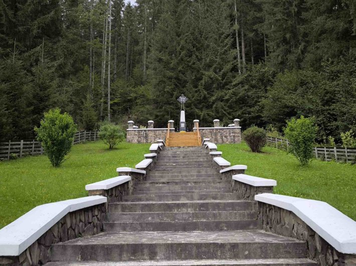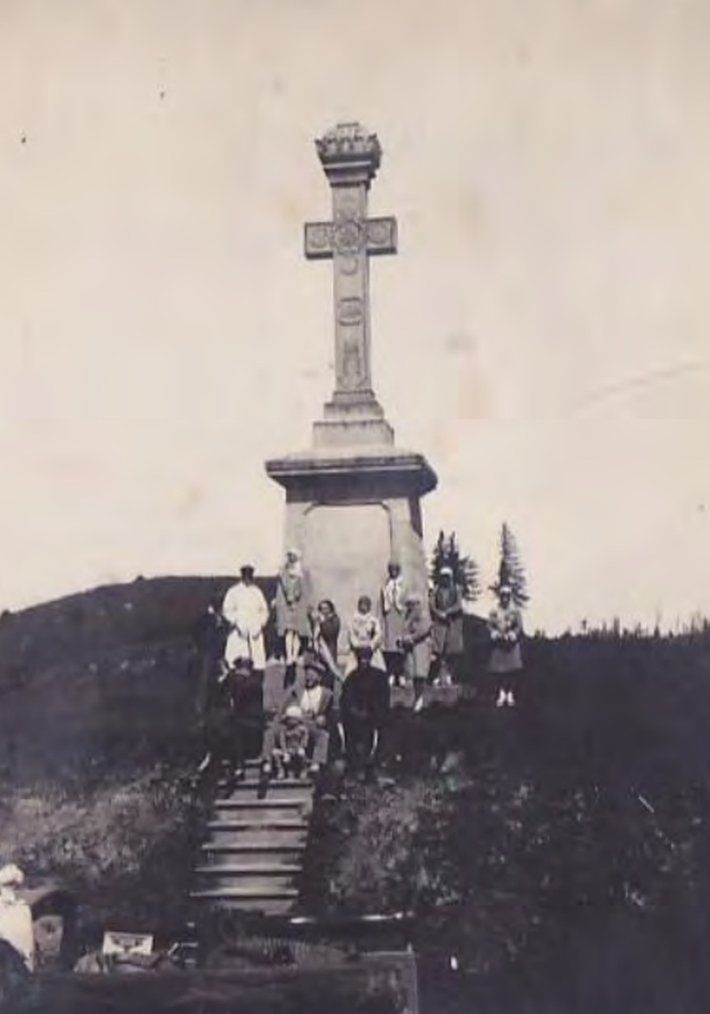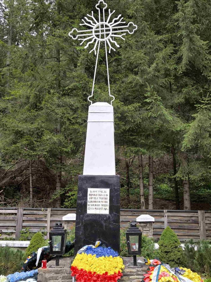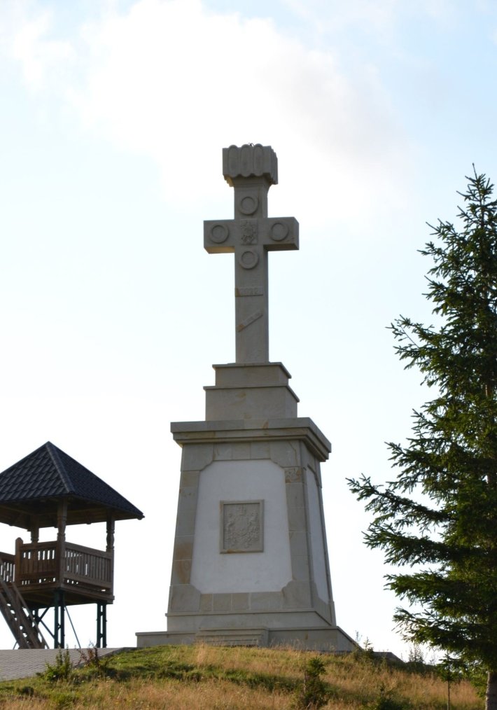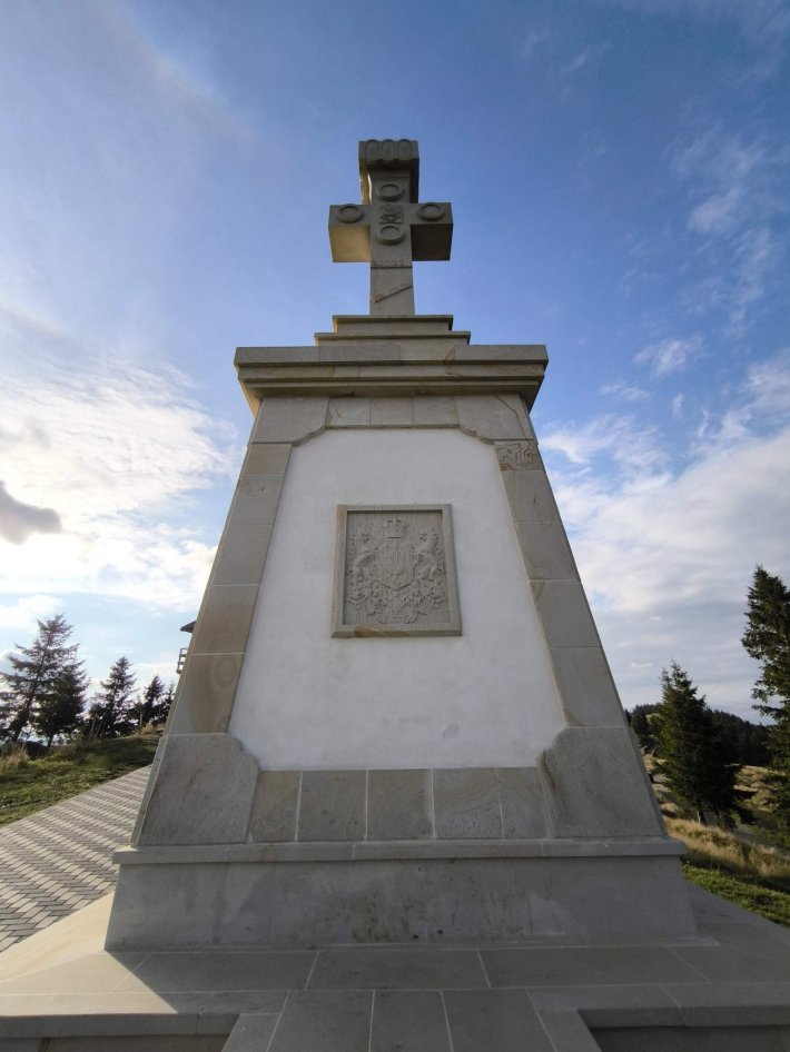 Dar italienii nu au făcut doar vestitul drum, ci au ridicat, pe culmea Stânișoarei, și o cruce cioplită în piatră, înaltă de 9 metri, încrustată cu însemnele regalității române, ca mulțumire adusă lui Dumnezeu pentru că au putut duce totul la bun sfârșit. „În vârf, pe muntele Stânișoara, s-a ridicat pentru comemorare o cruce înaltă de 9 metri, minunată ca și construcție, ca și concepție - după obiceiul strămoșesc”, stă notat într-un articol din ziarul „Evenimentul”, publicat în anul 1902. Crucea domina platoul montan și era loc de popas pentru călătorii care treceau dintr-o parte în cealaltă a muntelui. Localnicii i-au spus simplu „Crucea Talienilor”. Azi, numele nu mai aparține doar acestui monument, devenind, în timp, un toponim.