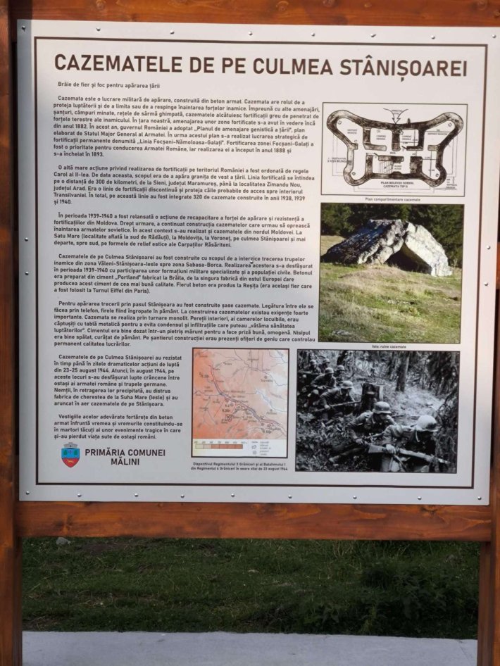Și tot pretutindeni urmele războaielor ce au marcat prima jumătate a secolului trecut: un osuar și un monument al ostașilor români, la Valea Colibei, cazematele construite sus, pe Stânișoara, de regele Carol I, parte din sistemul de apărare a țării, amintirea eroului Vasile Teodoreanu, omorât de nemți, în zilele când armata română a schimbat taberele, în cel de-Al Doilea Război Mondial. Fiindcă această lungă vale a Mălinilor, ca și Drumul Talienilor, a ținut linia frontului în ambele războaie. Iar memoria locală a rămas sensibilă la aceste amintiri.