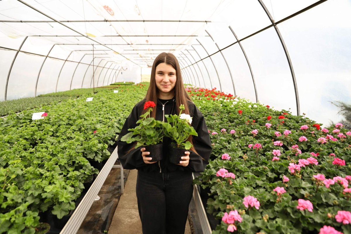 Florile sunt amplasate pe diferite categorii, unele stau suspendate, iar altele stau pe mese, însă aşezarea lor nu este lăsată la voia întâmplării. Totul depinde de lumină, temperatură, umiditate, dar şi aspectul estetic: „Aici avem o combinație foarte frumoasă de calliope cu mușcate cu floare simplă. Combinăm o calliopă roșie cu mușcate cu floare simplă albă și arată foarte bine. Muşcatele le plantăm în jardiniere, apoi ele merg în unele localităţi, pentru decor. Panseluțele sunt foarte apreciate, avem foarte multe culori, sunt foarte variate. Pentru mine sunt unele dintre florile preferate. Mie îmi plac cel mai mult surfiniile. Sunt niște flori pretențioase, cer multă atenție, uneori vara au nevoie de insecticide, de îngrijire suplimentară, e necesar să fie udate aproape în fiecare zi”, ne mărturiseşte Ştefana.