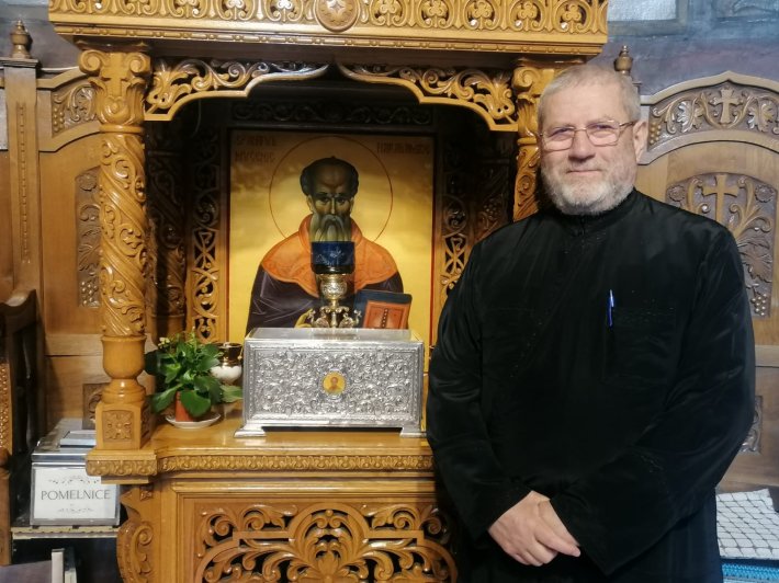 Între credincioși, gesturile sunt familiare, se salută cu zâmbet cald și se așază fiecare la locul lui parcă știut din veșnicie. În ușa Altarului, cu blândețe, pr. Radu Brînză ascultă durerea fiecăruia și-i binecuvântează, astfel că pe fața oamenilor se citesc bucuria și speranța.