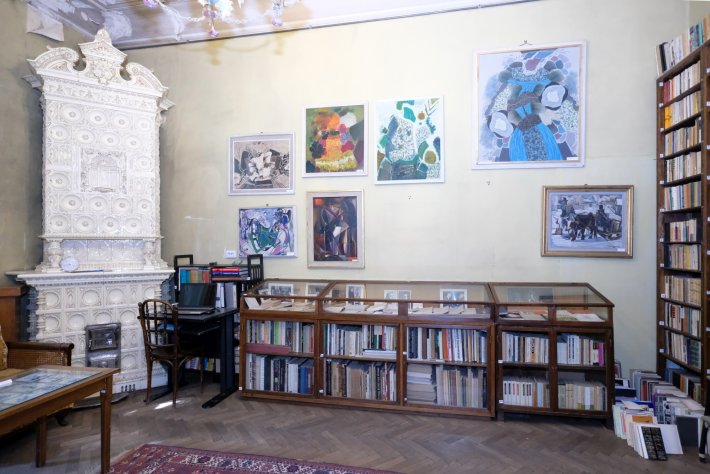 Biblioteca este şi ea impresionantă. „Țin să spun că, pe lângă cele 1.201 volume de artă donate de soții Macovei, au mai fost donate de către nepoata domnului profesor, doamna Mihaela Macovei, alte volume de carte din același domeniu și aproximativ 9.000 de cărți”, precizează ghida noastră.