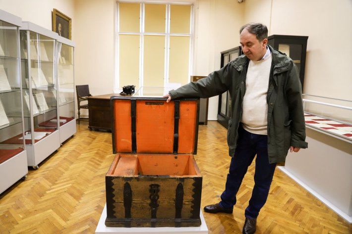 „Palatul a găzduit la început prima bibliotecă publică a românilor din Transilvania şi primul muzeu public al românilor din Transilvania. Muzeul a funcţionat la etajul I, în şapte-opt încăperi, dar după anul 1950 au fost multe modificări ale spaţiilor. La 1 decembrie 2014, în parteneriat cu Muzeul Brukenthal şi Complexul Naţional Muzeal ASTRA, am dorit să refacem Muzeul Asociaţiunii. Nu l-am putut organiza decât în trei încăperi, pentru că restul spaţiilor sunt dedicate altor colecţii. Avem aici cabinetele academicianului Andrei Oţetea, care a donat Bibliotecii ASTRA cărţi, obiecte de artă şi o cabană în localitatea Sibiel. Avem aici o importantă colecţie de periodice, expoziţii temporare, corespondenţă şi fişe ale Enciclopediei Române în trei volume, coordonate de Corneliu Diaconovici, în perioada 1898-1904. Avem fişe manuscris ale lui Titu Maiorescu, avem aici biroul celui care a pus bazele Muzeului în aer liber din Dumbrava Sibiului, Cornel Irimie. Am recuperat două dulapuri care au făcut parte din expoziţia de la 1905, de la inaugurarea palatului, avem o sală cu o colecţie etnografică cu piese ale Asociaţiunii, avem o carte cu titlul «Alfavita sufletească» expusă la 1905 şi care a fost donată mai apoi către Biblioteca Asociaţiunii, avem o machetă a unui şteamp care a fost expusă atunci, la 1905, despre care colegii de la Complexul Naţional Muzeal ASTRA spun că ar fi prima machetă expusă vreodată la noi. Monumentul la dimensiunile reale se află expus în Muzeul în aer liber din Dumbrava Sibiului. Avem aici şi o sală unde organizăm expoziţii temporare. În prezent este expusă corespondenţa Mitropolitului Andrei Şaguna cu istoricul Ioan Puşcariu, scrisori din arhiva Bibliotecii Academiei Române, o expoziţie organizată în parteneriat cu Muzeul Naţional Brukenthal şi Mitropolia Ardealului. Tot aici avem expuse mobilier din vremea Mitropolitului Andrei Şaguna, adus de la Reşedinţa mitropolitană, icoane vechi din secolul al XVIII-lea, un tablou al Mitropolitului Andrei Şaguna, presa «Telegrafului Român» folosită odinioară la tipărirea publicaţiei şi alte obiecte de patrimoniu”, ne-a spus Bogdan Andriescu, şef Serviciu cercetare ştiinţifică în cadrul Bibliotecii ASTRA.
