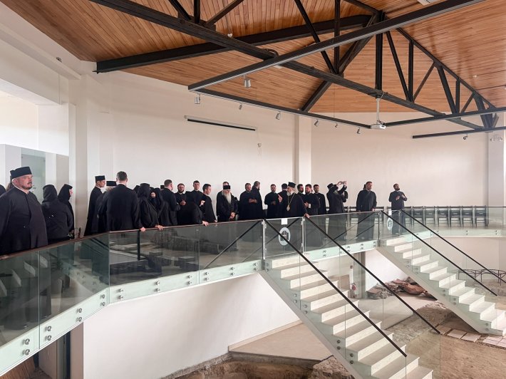 Călătoria a continuat spre un alt așezământ monahal emblematic al Dobrogei - Mănăstirea Celic-Dere, unde întâlnirea cu liniștea taborică a locului și cu icoanele făcătoare de minuni ale Maicii Domnului a adus inimilor o nouă rază de lumină și mângâiere. Ridicată la începutul secolului al 20-lea, această mănăstire reflectă o îmbinare remarcabilă între tradiția ortodoxă românească și influențele monahale rusești, datorită călugărilor veniți din Sfântul Munte Athos, care au contribuit la zidirea și consolidarea sa. În acest cadru duhovnicesc, grupul a servit prânzul în trapeza mănăstirii, într-o atmosferă de comuniune frățească și recunoștință. La finalul agapei, Înaltpreasfințitul Părinte Ciprian a adresat maicii starețe un cuvânt de mulțumire, apreciind dragostea, grija și căldura cu care au fost primiți, dar și statornicia duhovnicească a acestei vetre monahale. În semn de prețuire și întărire a vieții spirituale, ierarhul a oferit cărți de rugăciuni, precum și mai multe volume religioase.