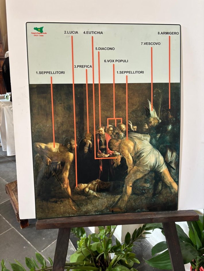 Caravaggio ajunge la Siracuza în 1608, în timpul exilului său pentru a evita pedeapsa capitală. Aici este găzduit de prieteni influenți care îi comandă un tablou „Înmormântarea Sfintei Lucia”, pentru biserica sfintei din afara zidurilor orașului - „Santa Lucia al Sepolcro”.