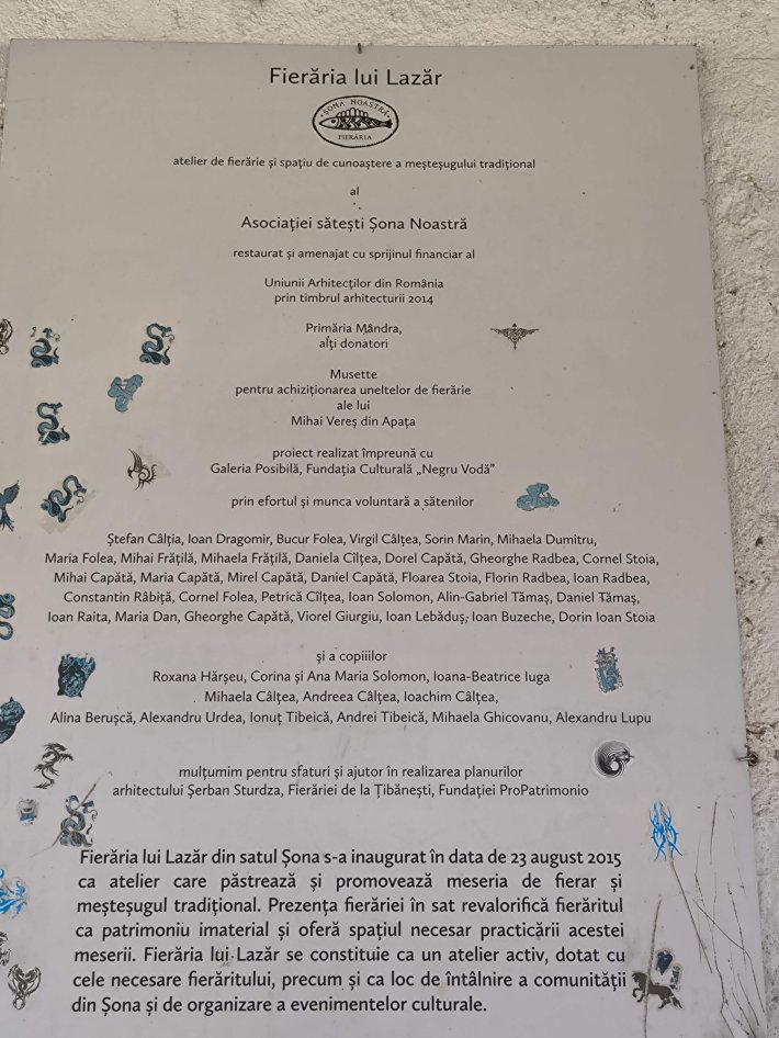 Printre pietre și ruine, printre cărămizi vechi și pereți pe jumătate risipiți, crâmpeiele de albastru ale zidurilor au rezistat. Niște spărturi de cer prin care s-a putut întrezări din nou viitorul. Arhitectul Eugen Vaida, fondatorul Ambulanței pentru Monumente și membru fondator al Asociației Monumentum, pictorul Ștefan Câlția și membrii Asociației sătești „Șona noastră” au înțeles asta. Fațadele albastre au început să reapară în Șona, pictorul Câlția și-a cumpărat o casă care trăgea să moară și a restaurat-o. Azi e rezidență de creație pentru artiști și centrul în jurul căruia gravitează această planetă albastră. „Din 2017 încoace, sute de voluntari au venit la Șona, pentru a-și dărui timpul și priceperea. Programul educaţional amplu de la Şona, bazat pe întâlnirea dintre arhitectură vernaculară şi celelalte arte se desfăşoară pe o perioadă de 10 ani şi este iniţiat de Asociaţia Monumentum (asociație fondată în 2012 pentru a contribui la salvgardarea patrimoniului imobil și a arhitecturii tradiționale, n.r.), Fundaţia culturală «Ştefan Câlţia», în parteneriat cu Asociaţia sătească «Şona noastră». Și am început cu restaurarea fațadelor albastre, folosind materialele naturale, tehnicile, uneltele și rețetele vechi de tencuială”, spun cei de la Asociația „Șona noastră”.