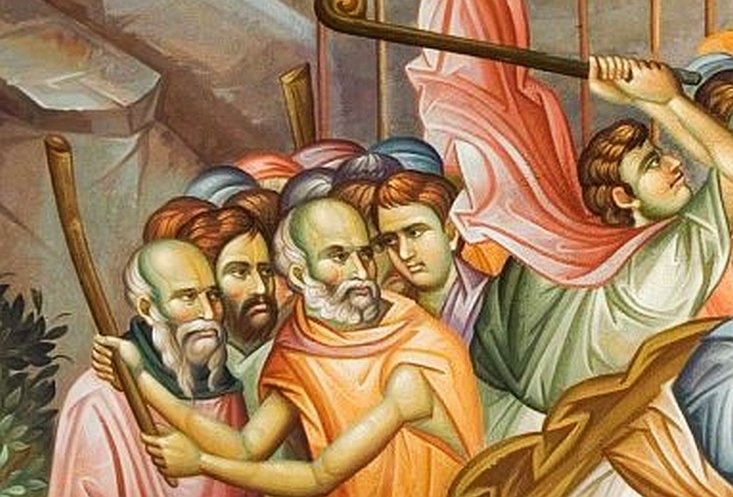 În zilele acelea, Pavel, luând cu el pe cei patru bărbați, curățindu-se împreună cu ei a doua zi, a intrat în templu, vestind împlinirea zilelor curățirii, până când a fost adusă jertfa pentru fiecare din ei. Și, când era să se împlinească cele șapte zile, iudeii din Asia, văzându-l în templu, au întărâtat toată mulțimea și au pus mâna pe el, strigând: Bărbați israeliți, ajutați! Acesta este omul care învață pe toți, pretutindeni, împotriva poporului și a Legii și a acestui loc; încă și elini a adus în templu și a spurcat acest loc sfânt. Căci ei văzuseră mai înainte cu el împreună în cetate pe Trofim din Efes, pe care socoteau că Pavel l-a adus în templu. Și s-a mișcat toată cetatea și poporul a alergat din toate părțile și, punând mâna pe Pavel, îl trăgeau afară din templu și îndată au închis porțile. Dar, când căutau ei ca să-l omoare, a ajuns veste la comandantul cohortei că tot Ierusalimul s-a tulburat. Acela, luând îndată ostași și sutași, a alergat la ei; iar ei, văzând pe comandant și pe ostași, au încetat de a mai bate pe Pavel.