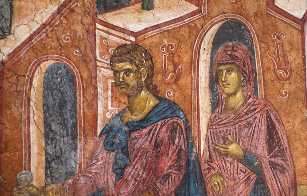 În zilele acelea un om, anume Anania, împreună cu Safira, femeia lui, și-a vândut țarina. Și a ascuns din preț, știind și femeia lui, și, aducând o parte, a pus-o la picioarele apostolilor. Iar Petru a zis: Anania, de ce a umplut Satana inima ta, ca să minți tu Duhului Sfânt și să ascunzi din prețul țarinei? Oare, păstrând-o, nu-ți rămânea ție, și vândută, nu era în stăpânirea ta? Pentru ce ai pus în inima ta lucrul acesta? N-ai mințit oamenilor, ci lui Dumnezeu! Iar Anania, auzind aceste cuvinte, a căzut și a murit. Atunci frică mare i-a cuprins pe toți care au auzit. Și, sculându-se cei mai tineri, l-au înfășurat în giulgiu și, scoțându-l afară, l-au îngropat. După un răstimp, ca de trei ceasuri, a intrat și femeia lui, neștiind ce se întâmplase. Iar Petru a zis către ea: Spune-mi dacă ați vândut țarina cu atât? Iar ea a zis: Da, cu atât. Iar Petru a zis către ea: De ce v-ați învoit voi să ispitiți Duhul Domnului? Iată, picioarele celor ce au îngropat pe bărbatul tău sunt la ușă și te vor scoate afară și pe tine. Și ea a căzut îndată la picioarele lui Petru și a murit. Și, intrând tinerii, au găsit-o moartă și, scoțând-o afară, au îngropat-o lângă bărbatul ei. Și frică mare a cuprins toată Biserica și pe toți care au auzit acestea.