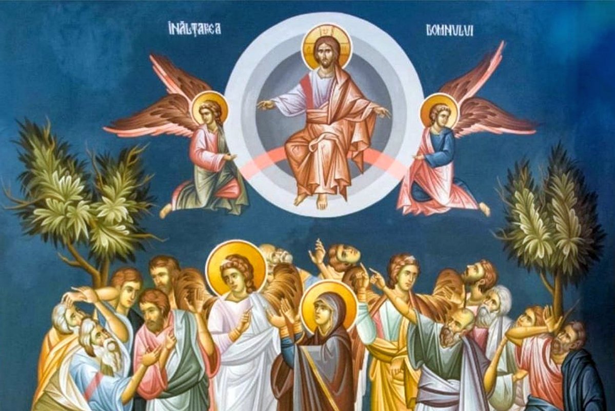 „În vremea aceea, după ce a înviat din morți, Iisus a stat în mijlocul ucenicilor Săi și le-a zis: Pace vouă! Iar ei, înspăimântându-se și înfricoșându-se, credeau că văd un duh. Și Iisus le-a zis: De ce sunteți tulburați și pentru ce se ridică astfel de gânduri în inimile voastre? Vedeți mâinile Mele și picioarele Mele, că Eu Însumi sunt; pipăiți-Mă și vedeți, că duhul nu are carne și oase precum Mă vedeți pe Mine că am. Și, zicând acestea, le-a arătat mâinile și picioarele Sale. Deci, încă necrezând ei de bucurie și minunându-se, El le-a zis: Aveți aici ceva de mâncare? Iar ei I-au dat o bucată de pește fript și dintr-un fagure de miere. Și, luând, a mâncat înaintea lor. Apoi le-a zis: Acestea sunt cuvintele pe care le-am grăit către voi fiind încă împreună cu voi, că trebuie să se împlinească toate cele scrise despre Mine în Legea lui Moise, în proroci și în psalmi. Atunci le-a deschis mintea ca să priceapă Scripturile. Și le-a spus: Așa este scris, și așa trebuia să pătimească Hristos și să învieze din morți a treia zi, și să se propovăduiască în numele Său pocăința spre iertarea păcatelor la toate neamurile, începând de la Ierusalim. Voi sunteți martorii acestora. Și, iată, Eu trimit peste voi făgăduința Tatălui Meu; însă voi să ședeți în cetatea Ierusalimului până ce vă veți îmbrăca cu putere de sus. Și i-a dus afară până spre Betania și, ridicându-Și mâinile, i-a binecuvântat. Și, pe când îi binecuvânta, S-a despărțit de ei și S-a înălțat la cer. Iar ei, închinându-se Lui, s-au întors în Ierusalim cu bucurie mare. Și erau în toată vremea în templu, lăudând și binecuvântând pe Dumnezeu. Amin.”