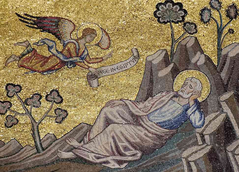 „După plecarea magilor, iată îngerul Domnului se arătă în vis lui Iosif, zicând: Scoală-te, ia Pruncul şi pe Mama Sa, fugi în Egipt şi stai acolo până ce-ţi voi spune, fiindcă Irod va căuta Pruncul ca să-L omoare. Iar el, sculându-se, a luat noaptea Pruncul şi pe Mama Sa şi au plecat în Egipt. Şi au stat acolo până la moartea lui Irod, ca să se împlinească cuvântul spus de Domnul prin prorocul: «Din Egipt am chemat pe Fiul Meu». Iar când Irod a văzut că a fost amăgit de magi, s-a mâniat foarte tare şi, trimiţând, a ucis pe toţi pruncii care erau în Betleem şi în toate hotarele lui, de doi ani şi mai în jos, după timpul pe care îl aflase de la magi. Atunci s-a împlinit ceea ce se spusese prin Ieremia Prorocul: «Glas în Rama s-a auzit, plângere şi tânguire multă; Rahela îşi plânge copiii şi nu voieşte să fie mângâiată, pentru că ei nu mai sunt». După moartea lui Irod, iată că îngerul Domnului s-a arătat în vis lui Iosif, în Egipt, şi i-a zis: Scoală-te, ia Pruncul şi pe Mama Sa şi mergi în pământul lui Israel, căci au murit cei ce căutau să ia viaţa Pruncului. Iosif, sculându-se, a luat Pruncul şi pe Mama Sa şi au venit în pământul lui Israel. Dar auzind că domneşte Arhelau în Iudeea, în locul lui Irod, tatăl său, Iosif s-a temut să meargă acolo şi, luând poruncă în vis, s-a dus în părţile Galileei. Şi, venind, a locuit în oraşul numit Nazaret, ca să se împlinească ceea ce s-a spus prin proroci, că Nazarinean Se va chema.”