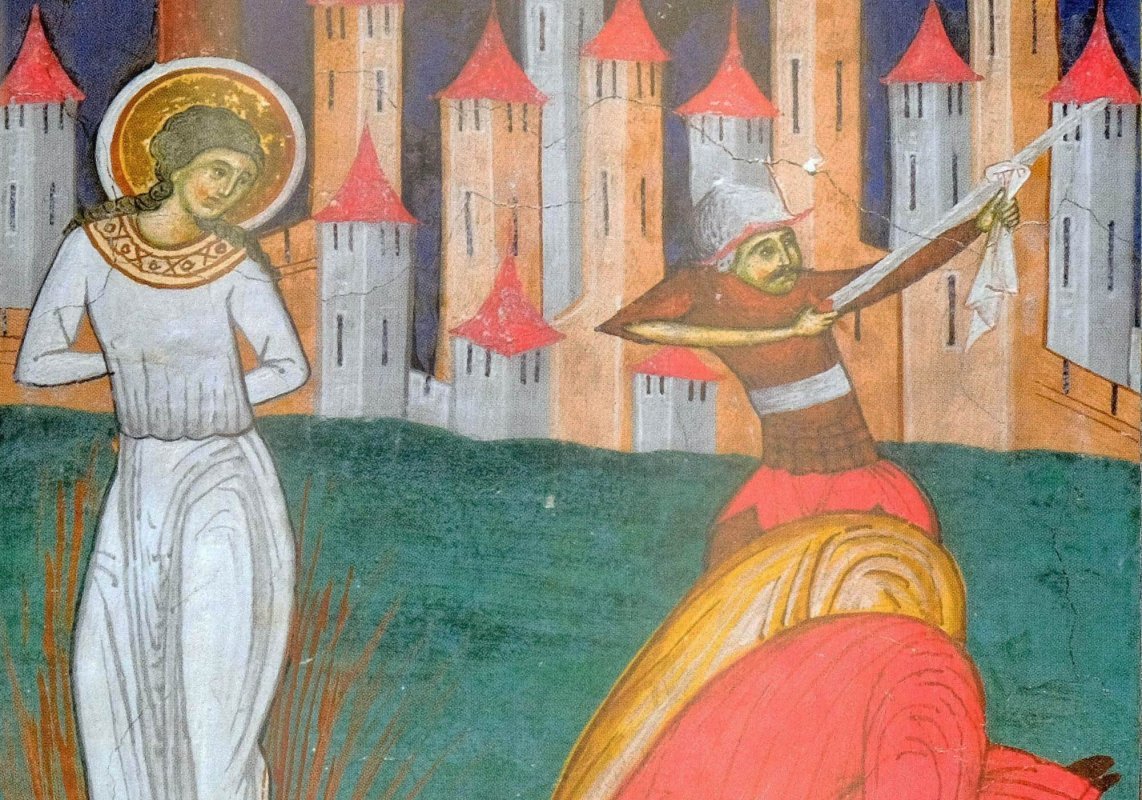 Chinuitorii ei, văzând că nu pot să-i aducă nici o vătămare prin tortură, au hotărât să o arunce fiarelor sălbatice, însă acestea nu au îndrăznit să se apropie de ea. În cele din urmă, sfânta primeşte moarte mucenicească prin tăierea capului. La aceeaşi moarte este supus şi tatăl ei.