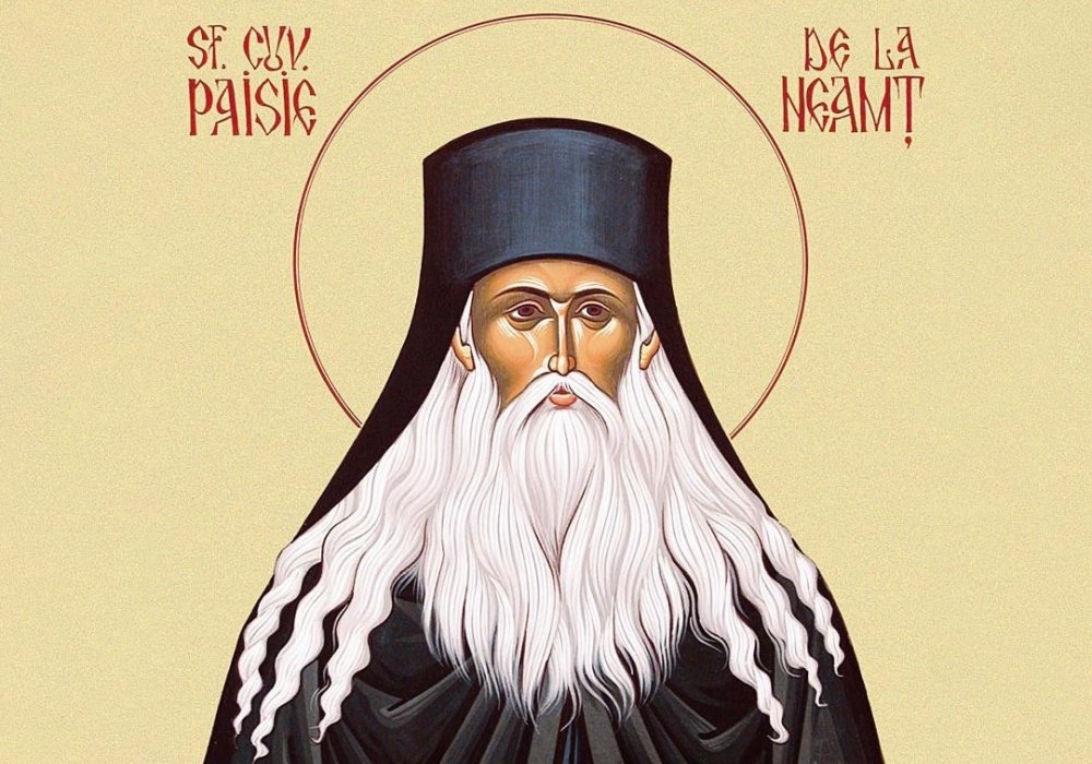 Sfântul Paisie (†1794) s-a născut în oraşul Poltava din Ucraina în anul 1722 într-o familie preoţească. Din botez a primit numele Petru. A fost dat să înveţe la Academia Teologică din Kiev, întemeiată de Petru Movilă, iar după patru ani a intrat în viaţa monahală la Mănăstirea Medvedeski, pe când avea 19 ani. Aici este făcut rasofor, primind numele Platon. După o scurtă şedere la Mănăstirea Pecerska, vine în Moldova în 1745 şi se stabileşte la mănăstirile Cârnu şi Dălhăuţi, sub povaţa Sfântului Vasile de la Poiana Mărului. În vara anului 1746 se duce la Muntele Athos, unde se nevoieşte ca sihastru patru ani. În 1750 este tuns în monahism de Cuviosul Vasile de la Poiana Mărului, duhovnicul său, primind numele de Paisie. Apoi, este hirotonit ieromonah şi întemeiază o obşte monahală în Schitul „Sfântul Proroc Ilie”, unde se nevoieşte până în vara anului 1763, adunând în jurul său 64 de călugări români, ucraineni şi ruşi. În 1775 s-a stabilit la Mănăstirea Secu, apoi la Neamţ. Timp de 15 ani cât a fost stareţ al celor două mănăstiri unificate, Secu şi Neamţ, Sfântul Paisie i-a îndrumat duhovniceşte pe cei peste 1.000 de călugări. O atenţie deosebită a acordat traducerii din limba greacă a scrierilor patristice filocalice, continuând astfel şirul traducerii de la Dragomirna şi Secu. Cuviosul Paisie era şi un bun organizator şi înnoitor al vieţii monahale, întemeind în jurul Muntelui Ceahlău câteva sihăstrii de călugăriţe, pe care le îndruma duhovniceşte, rânduindu-le duhovnic pe Cuviosul Iosif Pustnicul. În 1794, îmbolnăvindu-se, şi-a dat sufletul curat în mâinile Domnului, la vârsta de 72 de ani. Mormântul lui se află la Mănăstirea Neamţ.