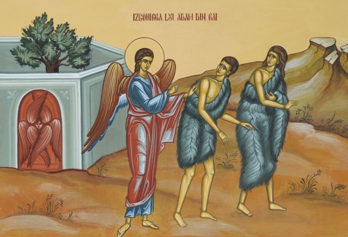 Ascunderea păcatului, învârtoșarea inimii şi învinuirea lui Dumnezeu pentru ispitirea venită de la femeie, precum şi lipsa părerii de rău pentru fapta săvârșită vor atrage de la sine izgonirea lui Adam din grădina Edenului. La o primă lectură a Facerii 3, 14-19, textul poate lăsa impresia că Dumnezeu pedepsește neascultarea omului prin blestemarea pământului. Însă, în gândirea Sfântului Simeon Noul Teolog, blestemul asupra pământului este interpretat, în mod paradoxal, drept o binecuvântare: Dumnezeu a îngăduit această schimbare a întregii creații pentru ca omul să poată continua să trăiască în ea şi pentru a nu mai duce o existență lipsită de greutăți şi de osteneli, care din punct de vedere duhovnicesc i-ar fi fost dăunătoare. În continuarea celor arătate mai sus despre urmările căderii omului şi despre ruptura produsă între om şi Dumnezeu, trebuie subliniat că gustarea din pomul cunoștinței binelui şi răului va atrage de la sine pierderea stării de slavă. Neascultarea va avea ca urmare dezbrăcarea de hainele de lumină, adică de veșmântul nestricăcios al slavei, şi îmbrăcarea goliciunii stricăciunii, simbolizată de hainele de piele (Facerea 3, 21). În concluzie, căderea omului reprezintă cea mai gravă decădere a ființei umane, o prăbușire din viața autentică la starea de supraviețuire, din demnitatea de împărat al creației la cea de supraviețuitor. Devenind din ființe nestricăcioase ființe supuse stricăciunii, Adam și Eva nu mai puteau viețui într-o lume nestricăcioasă. De aceea, stricăciunea și moartea nu apar ca o pedeapsă din partea lui Dumnezeu, ci ca o consecință a neascultării omului, iar Dumnezeu, din iubirea Sa infinită, schimbă legile creației pentru ca omul căzut să poată fi integrat într-o nouă ordine cosmică, adaptată stării sale. |