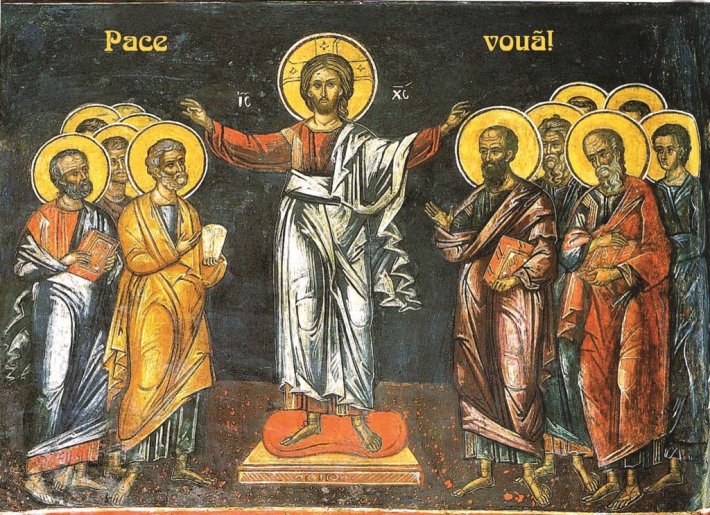Cuvintele pe care le adresează ucenicilor Săi în ziua Învierii este un salut al păcii. Nu este vorba de un înţeles lumesc pe care-l dăm noi păcii, ci despre o dăruire efectivă a acelei păci mesianice care înseamnă armonie şi fericire edenică. „Pace vouă” este mărturisirea şi transmiterea păcii Preasfintei Treimi, care ne invită să intram în plenitudinea vieţii plină de iubire a Persoanelor Treimice prin credinţă.